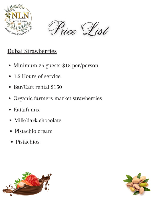 Looking for something extra special? Our customizable charcuterie carts and bar services add a stylish and interactive touch to any gathering. Whether youβre craving mini pancakes, indulgent strawberry Dubai cups, or a fully stocked grazing station, we bring the experience to you.